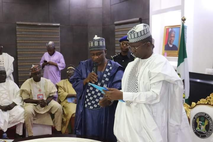 Governor Bello Mohammed (Matawallen Maradun, Shattiman Sakkwato) has received Matawalle/Shehi Amalagamated Group (MASANG) who were in his office to brief him of their milestone reconciliation move aimed at cementing all segments of the Party faithfuls in the state.
