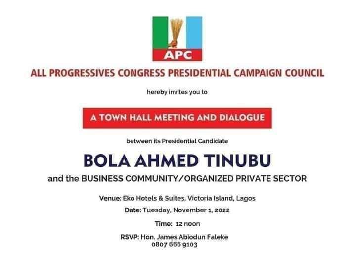 “The dialogue will enable Business Leaders to also share their insights and concerns with our Presidential candidate. The town hall will be a great avenue to sell Asiwaju’s vision for Nigeria,” Faleke said.