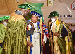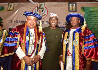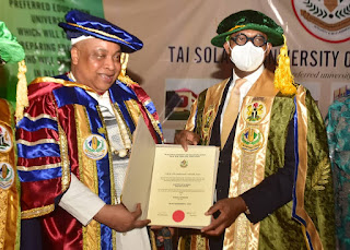 Akarigbo and Paramount Ruler of Remo who is also the incumbent Chairman of Ogun State Council of Obas, Oba Babatunde Adewale Ajayi, Akarigbo was on Sunday Honoured with honorary doctorate degrees by the Tai Solarin University of Education, Ijagun, Ijebu Ode, Ogun State, during the grand finale of its 12th convocation ceremonies.
